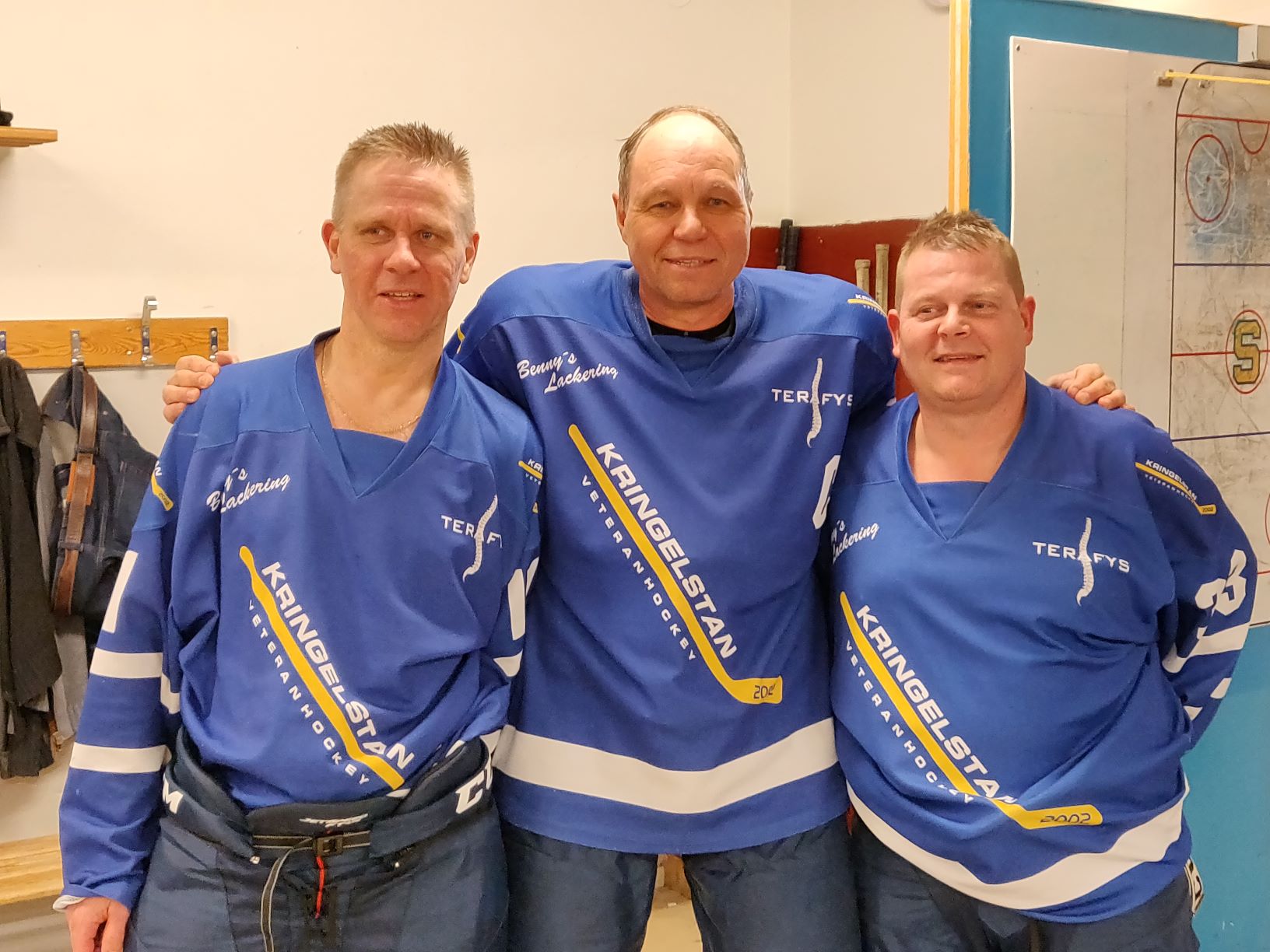+50 - SDEDags för A-lagsmatch mot SDE och det fanns ett par händelser som vi på läktarplats såg fram emot lite extra, Jander ska få göra sin A-lagsdebut efter att ha gjort ett flertal starka träningar och enligt rykten även ha tjatat en hel del på coachen och Dala ska göra sin 300:de match i Kringelstan något som bara legendarer som Bros och Tony kommit upp i tidigare.När matchen startar vill Dala visa att det inte är någon tillfällighet att han har gjort så många matcher och redan efter 24 sekunder skickar han in 1-0 assisterad av Jocke, vilt jubel på läktaren och det tar lite tid innan matchen kan återupptas efter alla hyllningar. Kringelstan fortsätter i samma stil och när klockan hunnit ticka fram ytterligare fem minuter så kommer 2-0, Kenta vinner en tekning klockrent bak till Nibbe som elegant skjuter förbi täcket i bortre burgaveln. Det verkar nästan gå lite för lätt för Kringelstan börjar slarva gång efter annan i egen zon och bjuder SDE på ett antal frilägen men som tur är finns Larsson där bak och han tänker inte bjuda dem på någonting. 12:50 in i matchen spelar Nibbe och Olle en klassisk back – back pass i mittzon innan Olle hittar Valle med en passning vid offensiv blå och han kan komma in längs vänsterkanten och skjuta in 3-0. Efter femton minuters spel kommer reduceringen och det är förvånande nog isens mest rutinerade spelare som slår en ”indianare” som SDE spelaren förvaltar på bästa sätt när han skickar iväg en projektil rätt upp i Larssons plockhandskryss. 4-1 hinner komma innan periodpausen och då är det Tony som först verkligen krigar ut pucken ur egen zon innan han tillsammans med Jocke är med och spelar fram Bros som skickar in en backhand i nätmaskorna. Andra perioden är överlag mycket sämre men några händelser vid målen sticker ut, 5-1 kommer efter att Olle (isens mest rutinerade spelare) får pucken vid blå av Peter och han tar ett par skär fram trycker upp skottet i nättaket bakom en helt chanslös SDE målvakt. Vid 5-2 så är det hemmalagets mest orutinerade spelare som blir varse om att A-lagshockey är något annat än han varit med om tidigare då han blir tunnlad av en motståndare, vilken är samma spelare som gjorde deras första och han skickar även den här gången upp en projektil i samma maska som förra gången. När SDE i slutet av matchen får chansen i powerplay tar man även ut keepern men då får Jander (hemma lagets mest orutinerade spelare) chansen att briljera när han kan lägga in sitt livs första A-lagsmål genom att prickskjuta från egen zon in i öppen kasse, han såg mäkta stolt ut när pressen släpptes in i omklädningsrummet och han tilldelades pucken. Skotten vinns med 35-19 men överlag är det ändå en ganska slarvigt genomförd match även om den såg ut att genomföras på ett ganska vänskapligt sätt lagen emellan. En liten märklig detalj var att i början av andra perioden så var det ingen som verkade få med sig pucken och efter att domarna hade blåst av spelet visade det sig att pucken inte var av bästa märke, är inte det något som ett helt fullsatt sekretariat ska ha koll på? //Sportbladets utsände